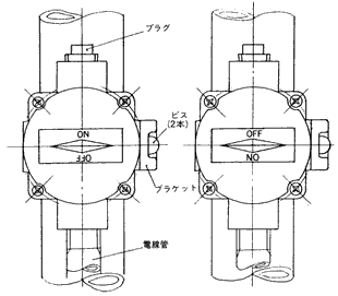 右図のようにビス(2本)を外し、本体を180°回転させますと、スイッチ動作は逆になります。 EXMS-90型も同様にして取付けを変更しますと、スイッチ動作は逆になります。